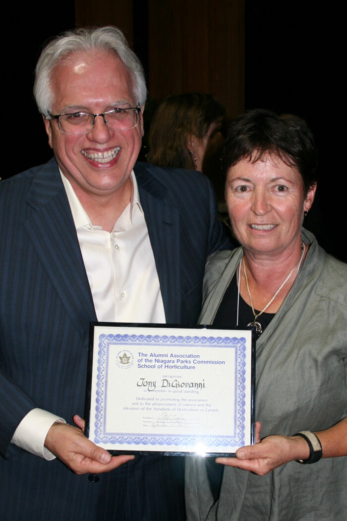 The Alumni Association of the Niagara Parks School of Horticulture honoured Tony DiGiovanni, executive director of Landscape Ontario, with an Honourary Membership at the 65th Educational Conference, held Sept. 15-17, 2017 in Niagara Falls, Ont.