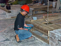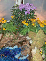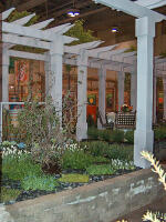 While some gardens concentrated on structural elements, Landscape Ontario’s contribution focused on the soft – the new plants introduced to the market for 2005. Situated beneath a metal tent draped in billowy, citrus-green fabric, a long dining table held many of the plant specimens, presented as place settings for the visitors to enjoy. Flanking the table on both sides were patchwork plantings of even more new varieties, all labeled for easy identification. At one far end, a cricket pitch and swath of grass promoted the benefits of turf in the landscape. Information on the new plant introductions – from woody plants to annuals, perennials and roses – was handed out from the “Botanical Buffet” feature garden in the third installment of the Landscape Trades Special Edition for Home Gardeners. Special thanks go to LO’s Denis Flanagan, Kristen