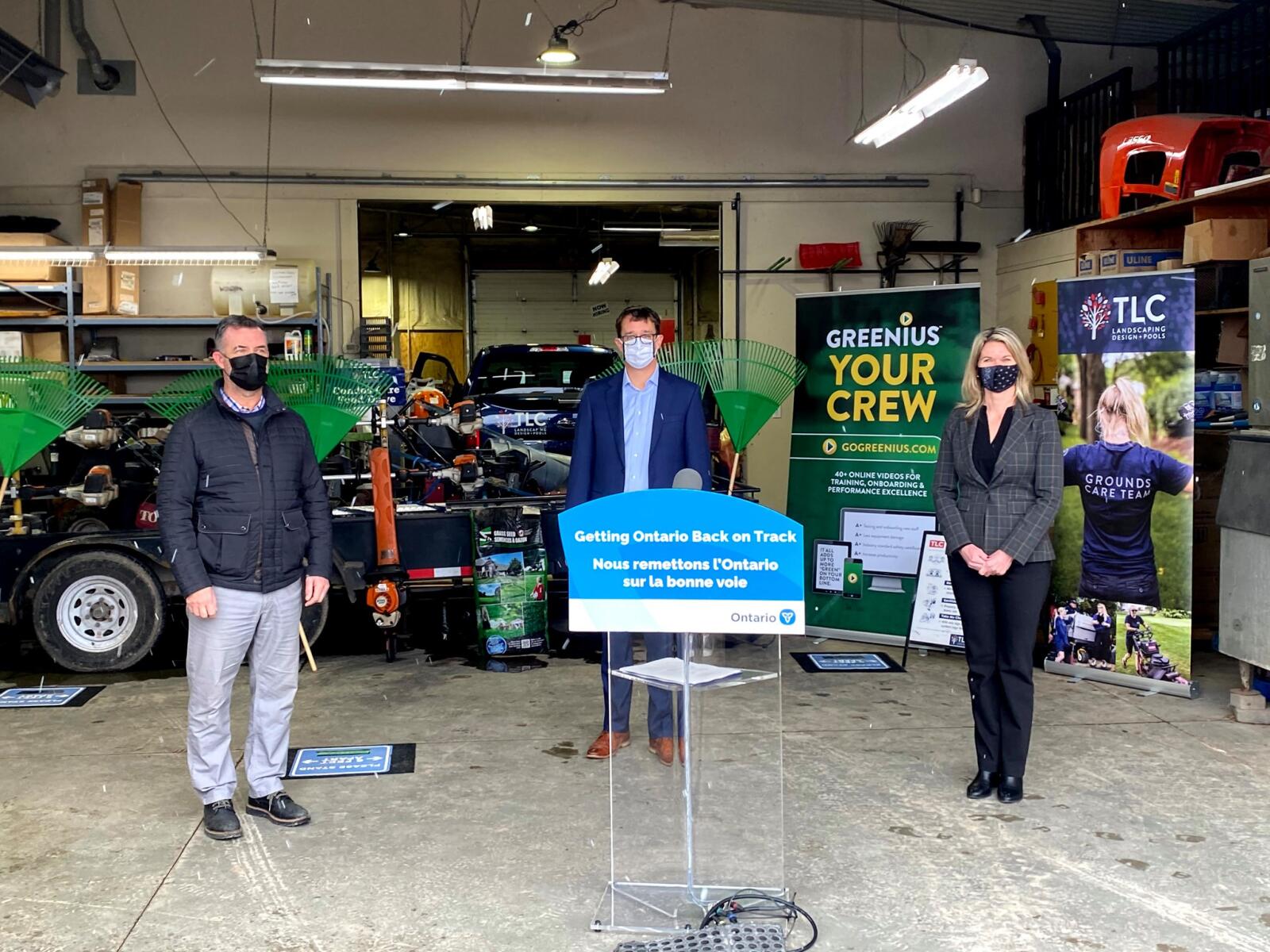 The Ontario government announced $20 million in funding to support apprenticeship in the skilled trades. Monte McNaughton, Minister of Labour, Training and Skills Development, made the announcement at Landscape Ontario member TLC Landscaping Design and Pools in London, Ont. on Dec. 4, 2020.