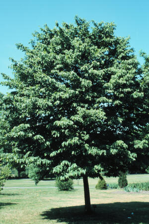 Form/texture Small tree with distinct trunk, pyramidal shape aging to a wide spreading crown and long slender branches; fine texture.