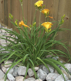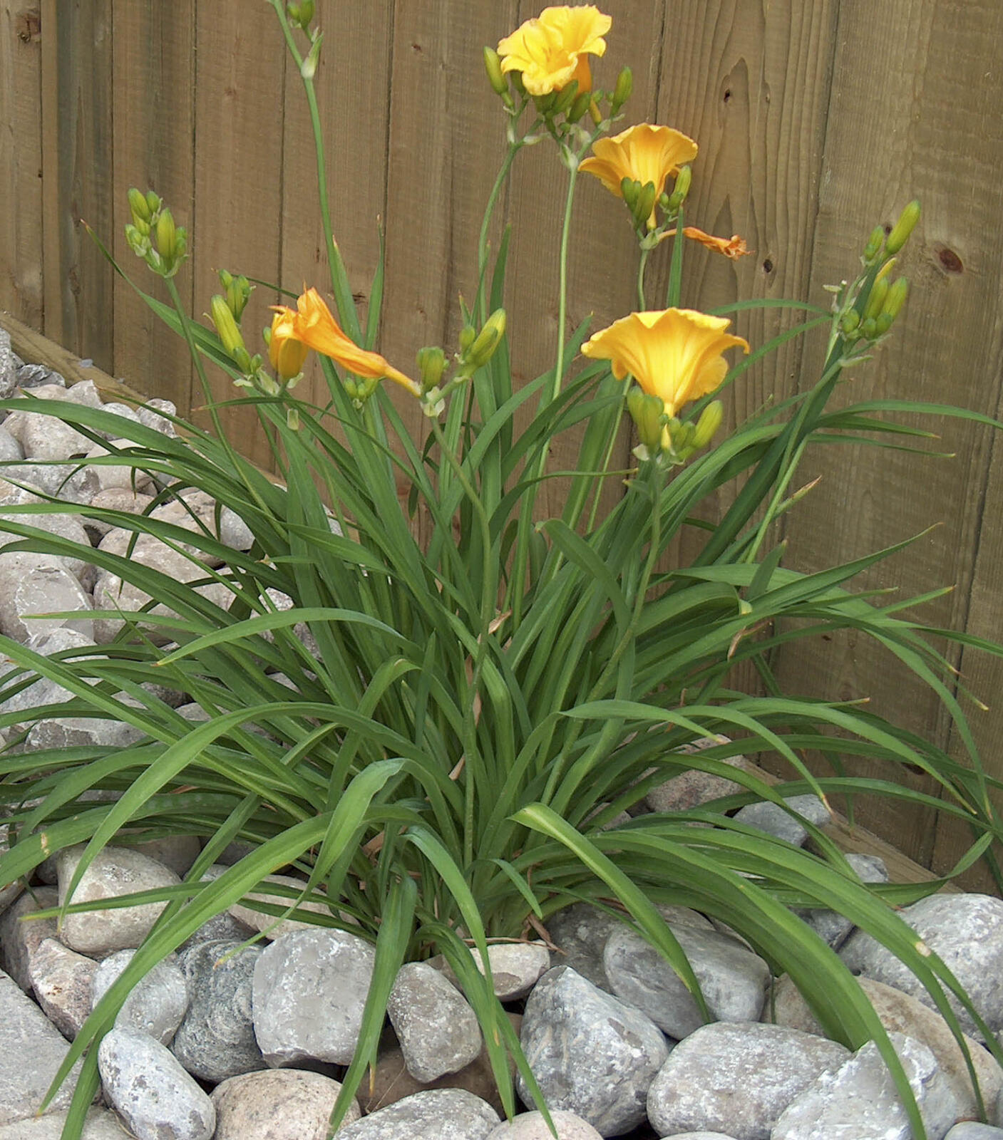 Hemerocallis (day lily) provides continuous blooms and grows to medium height.
