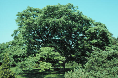 | Form/texture | Broad spreading open, rounded crown on a short trunk. |
