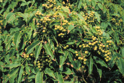 | Fruit | Fragrant, green turning to black as season ends. Gives a very coarse look to a medium looking tree, very messy when drops on sidewalks. “Seeds germinate like beans” (Dirr). |