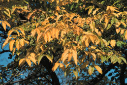 | Leaf | Opposite, compound, dark glossy green turning yellow. Interestingly late to leaf out. Leaf bases completely encircle the bud. |