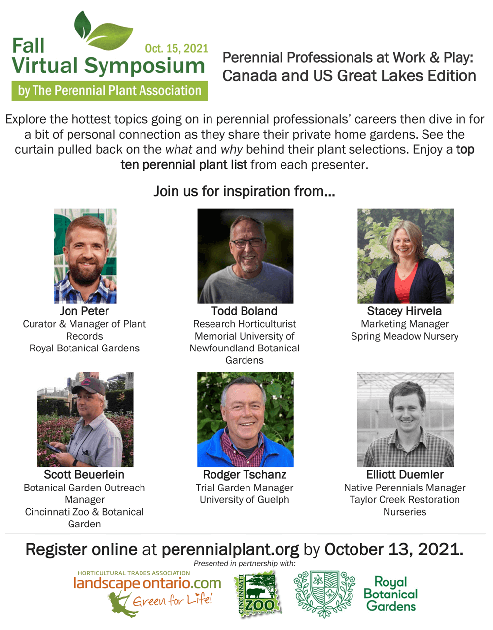 Presented by the Perennial Plant Association, Landscape Ontario, Royal Botanical Gardens, and Cincinnati Zoo & Botanical Garden