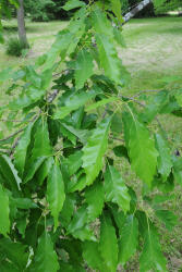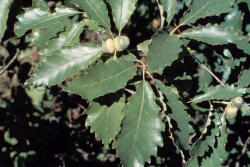 Chinquapin oak is a very attractive tree with lustrous, chestnut-like leaves and small acorns that are favoured by birds as much as squirrels.