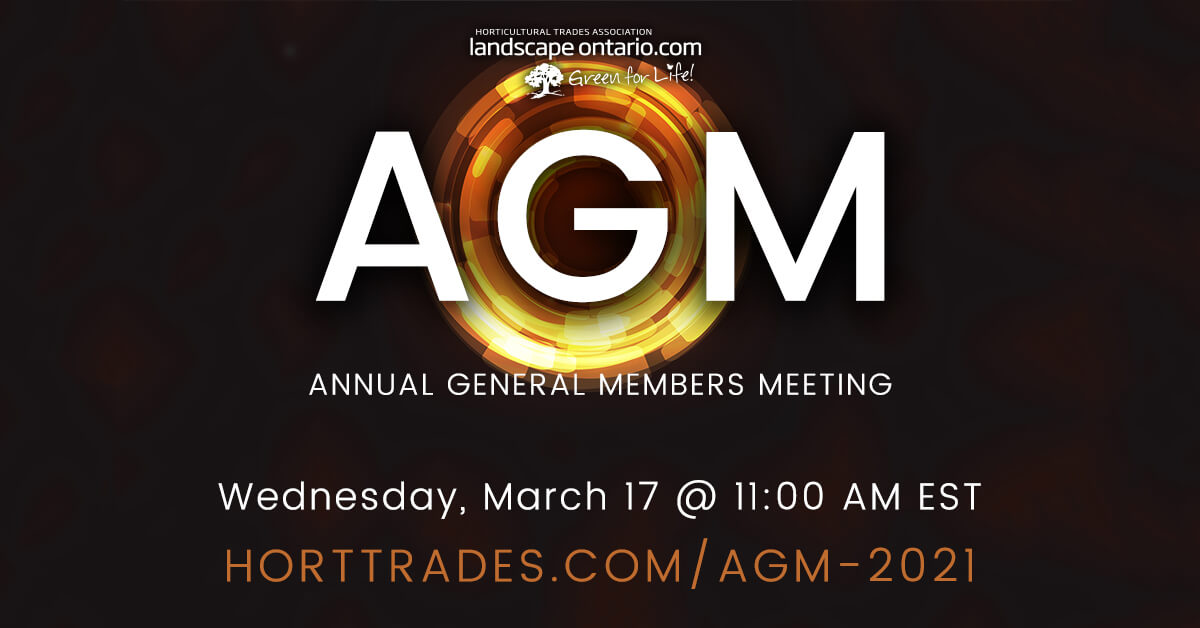 All Landscape Ontario Members are welcome to attend the 2021 Annual General Meeting (AGM) via Zoom at 11 am on March 17, 2021.