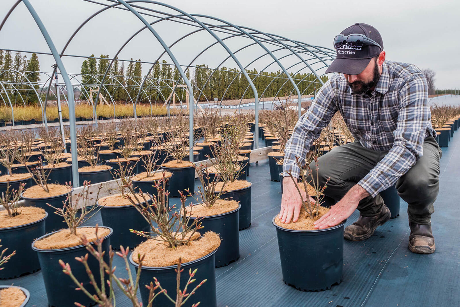 Coco-fibre discs have been added to every container-grown plant produced at Sheridan’s farms to reduce moisture loss by up to 30 percent. Drip irrigation has replaced sprinklers and broadcast watering, reducing water consumption by up to 80 per cent.