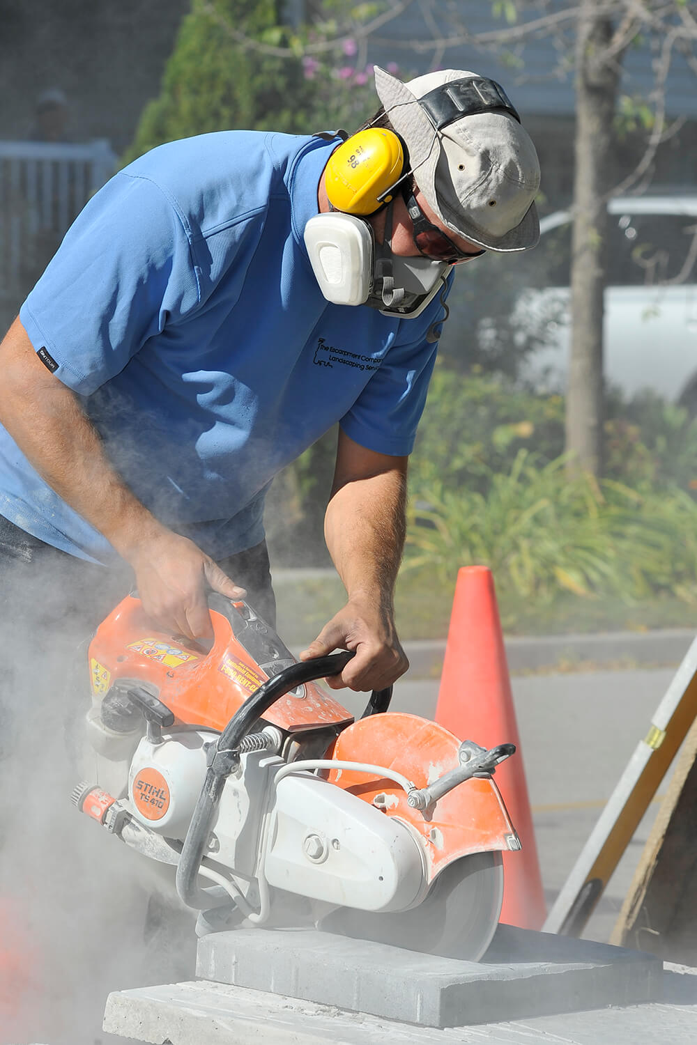 “I’ve been in this business for 27 years, and well remember when all stone cutting was done with wet saws,” says Ed Hansen of Hansen Lawn and Gardens in Ottawa. He explains that once dry saws became more powerful and mobile, the industry switched to that method.