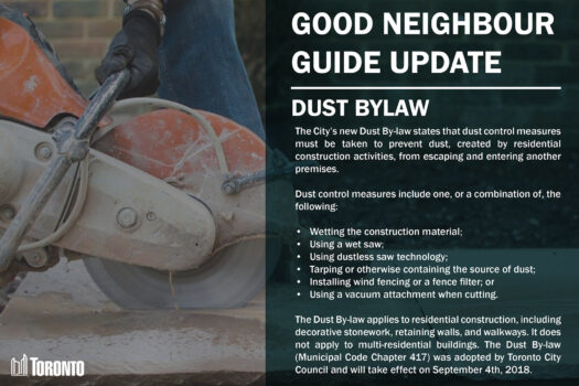 A new bylaw by the City of Toronto takes aim at controlling levels of construction dust on residential properties.