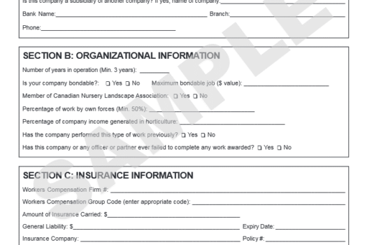 Sample Contract and Tender Pre-qualification Form This form is available only to current member companies of Landscape Ontario. Mis-use or...