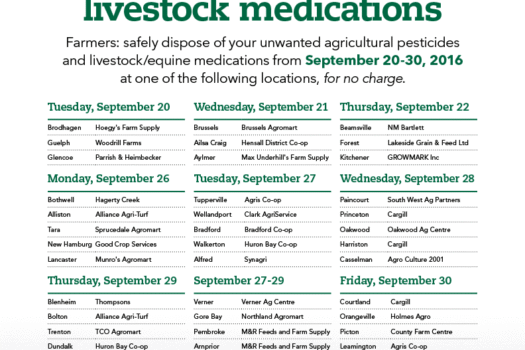 Drop off unwanted or obsolete pesticides and one of many locations throughout Ontario as part of CleanFARMS Ontario oboslete collection...