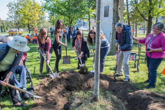 Sunnybrook Health Sciences Centre celebrated National Tree Day by planting 26 maple trees with the help of Maple Leaves Forever...