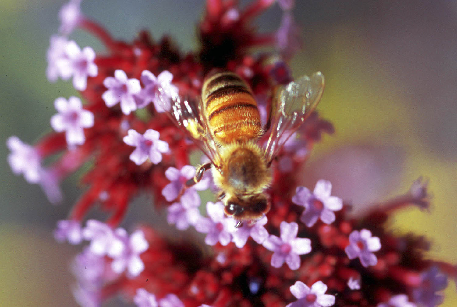 | Bees enjoying the dainty blossoms of Verbena bonariensis. |