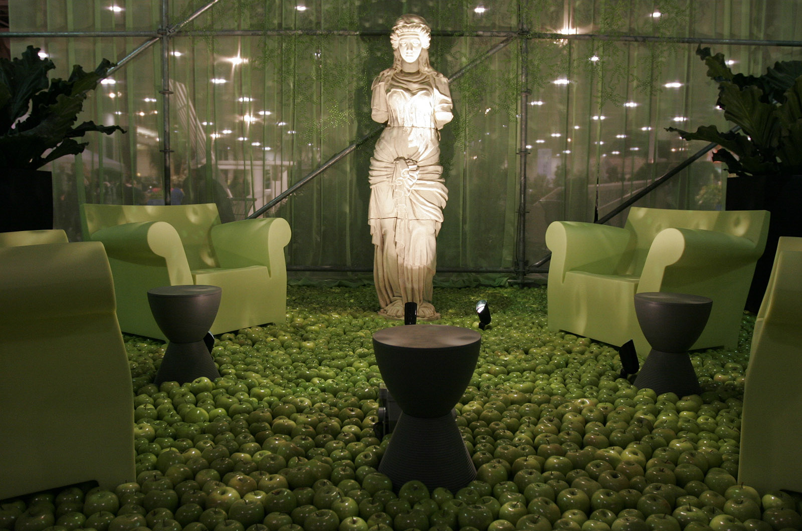 For the inaugural show, Oriole partnered with landscape architect Darrell Bankes on a display designed to look like an old waterworks building in disrepair with nature overtaking the pipes.