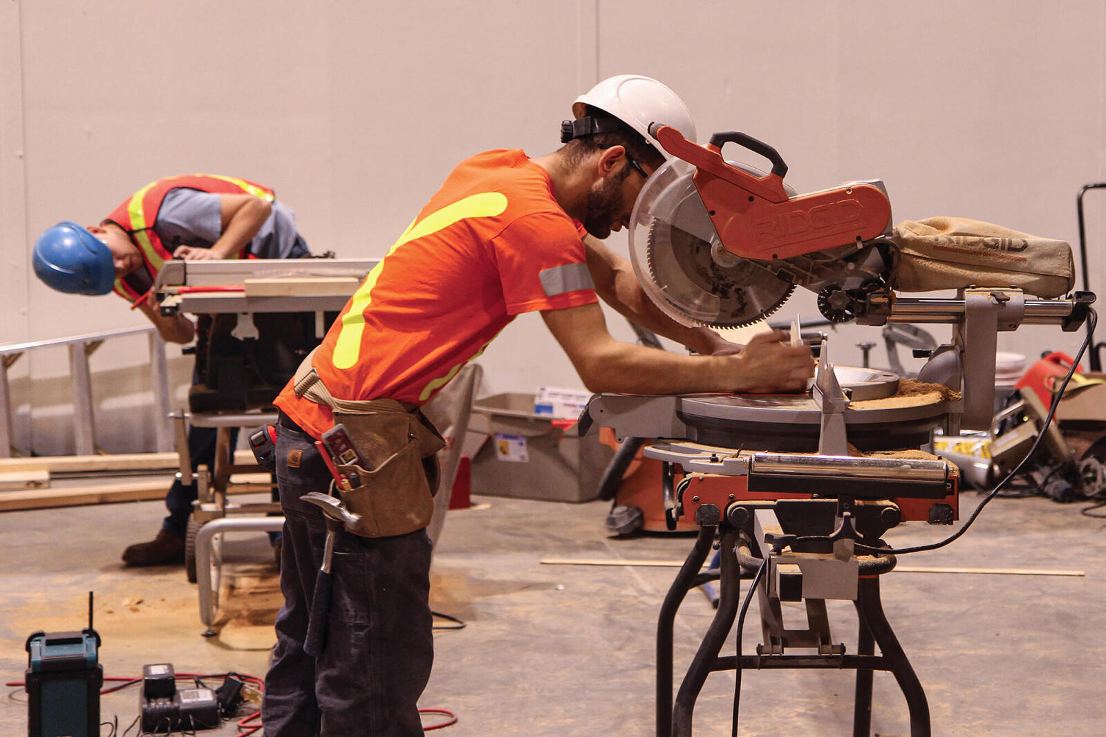 Very few people were wearing personal protective equipment. We purchased boxes of safety goggles, gloves and ear protection and assigned staff member Tom Somerville to distribute the gear to all workers on the show floor. Many refused.