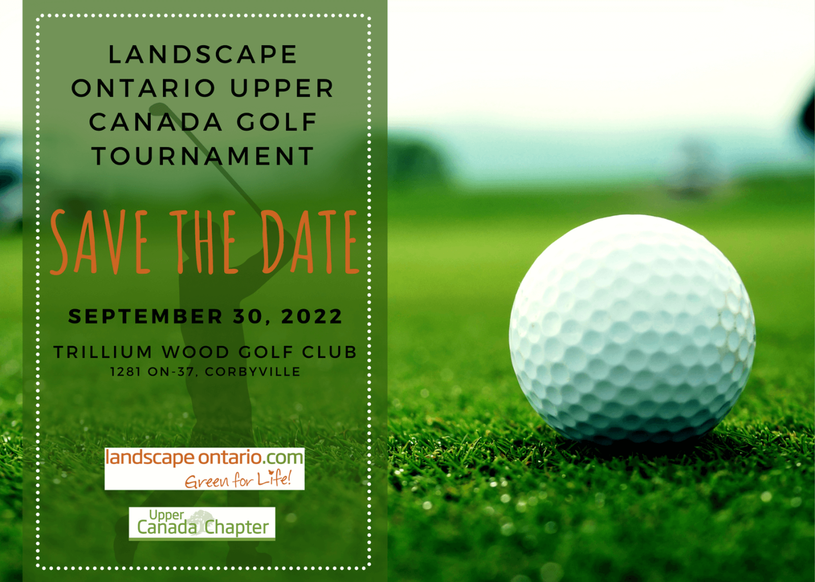 Are you ready to get back out on the golf course this fall? Mark September 30 on your calendar for the Upper Canada Chapter’s Golf Tournament. Get your foursome together and register your golfers now.