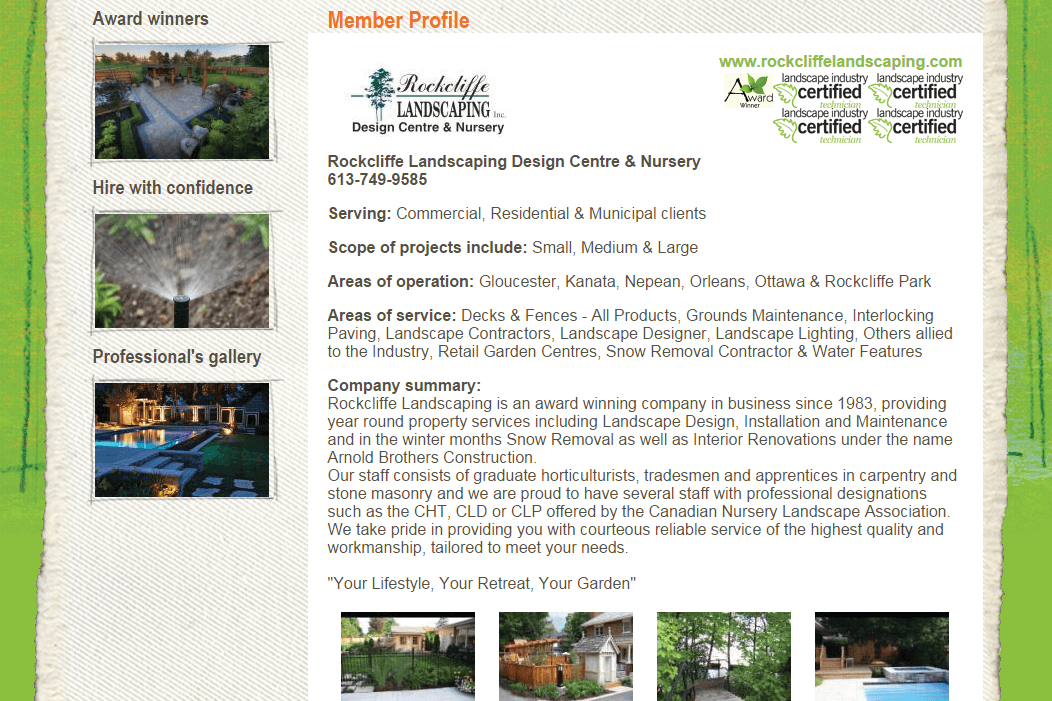 Having visited some of our members on job sites this summer, I have seen how thrilled your clients are at the ways that you have, to quote Tony DiGiovanni, “enhanced their lives.” They are as impressed with your work as we are, and I think this needs to be showcased. A great way to do this is through your free online profile on our consumer site, landscapeontario.com.