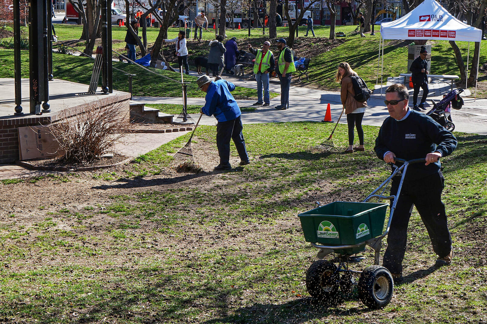In partnership with the St. Lawrence Market Neighbourhood Business Improvement Area and Project Evergreen, LO’s Lawn Care Sector Group, which includes Kyle Tobin, LawnSavers Plant Health Care and Alan White, Turf Systems, worked well in advance of the event to organize the necessary equipment, volunteers, suppliers and logistics for the day. The St. Lawrence BIA gets the word out to the community and holds a pancake breakfast, serving hot coffee and food to the many volunteers.