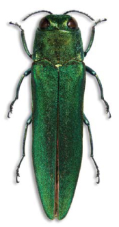 The emerald ash borer is an introduced insect pest from Asia that feeds on and kills ash trees. These insects cut off the flow of water and nutrients within the trees by feeding underneath the bark. All species and sizes of ash trees (genus: Fraxinus) are susceptible, except for the mountain ash (Sorbus spp.) which is not a true ash. If a tree has become infested with EAB, mortality will result, usually within 2-3 years.