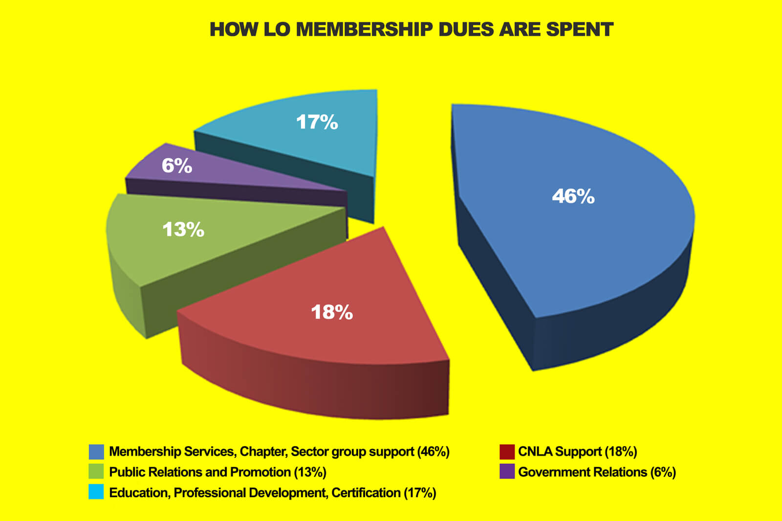 The cost of annual dues varies from $185.32 for a Horticultural (personal) membership to $737.89 for an Associate (supplier) membership. The nearly 500 Associate members account for 20 per cent of the LO membership. The majority of LO members (1,750) are Active members (contractors and other specialties) who pay $612.46 annually, accounting for over 65 per cent of the over 2,500 LO members. With about $1.2 million in dues revenue collected each year, have you ever wondered how the money is spent and how much it accounts for association activities?